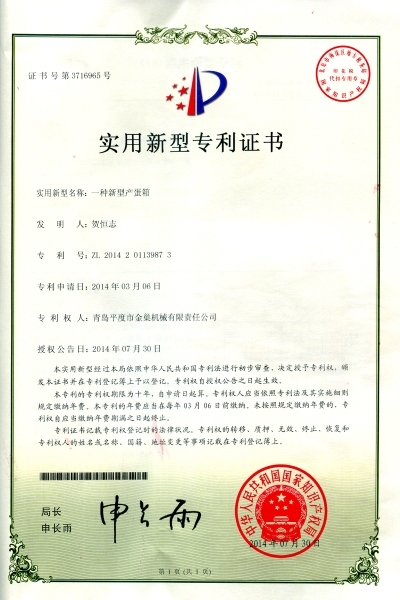 規格:2000*675*860mm,獲得三項國家專利。 自動集蛋式產蛋箱有如下幾種安裝形式:一是單面靠墻壁掛式安裝;二是雞舍網上懸掛升降安裝;種蛋輸送分為前置輸送和后置輸送;每天設定自動開關機時間,集蛋臺人工分撿、裝箱,可大量節省人工,減少破蛋率和臟蛋率,提高種雞飼養自動化水平。